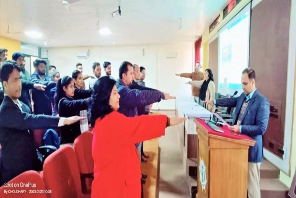 Shobhit University Gangoh: शोभित विश्वविद्यालय गंगोह में दिनाँक 23-01-2023 दिन सोमवार को नेताजी सुभाष चंद्र बोस जी की जयंती के उपलक्ष्य में एवं उत्तर प्रदेश सरकार के निर्देशानुसार 5 जनवरी 2023 से 4 फरवरी 2023 तक चल रहे सड़क सुरक्षा जागरूकता माह के अंतर्गत सड़क सुरक्षा नियमो एवं सावधानियों के पालन हेतु विश्वविद्यालय के सेमिनार हॉल में शपथ ग्रहण समारोह का आयोजन किया गया। चल रहे सड़क सुरक्षा जागरूकता माह के अंतर्गत अनेक ऑफलाइन एवं ऑनलाइन कार्यक्रमों कराये जा चुके है, जैसे- जागरूकता रैली, सड़क सुरक्षा सम्बन्धी संगोष्ठी, क्विज़ प्रतियोगिता, पोस्टर मेकिंग आदि।