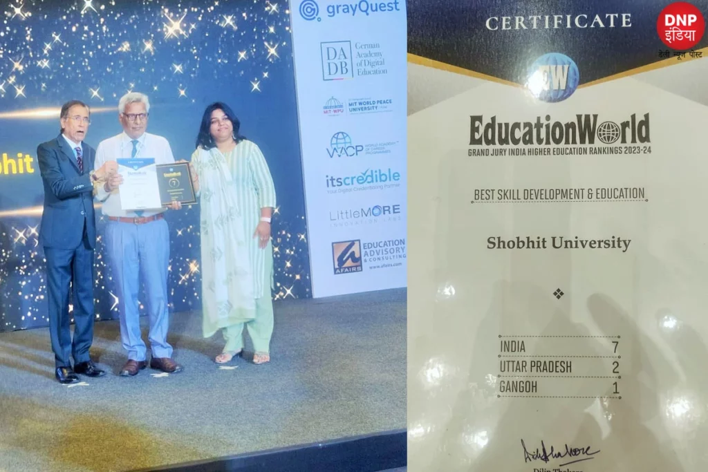 Shobhit University Gangoh: शोभित विश्विद्यालय गंगोह को दिनांक 27 मई 2023 शिक्षा के क्षेत्र में उत्कृष्ट नेतृत्व के लिए विश्व-ग्रैंड जूरी इंडिया हायर एजुकेशन रैंकिंग-2023-24 में भारत में 7वां और उत्तर प्रदेश में दूसरा स्थान मिला है। शोभित विश्वविद्यालय को यह सम्मान ग्रामीण भारत में कौशल विकास उद्योग में उत्कृष्टता लाने और छात्रों को विभिन्न सूक्ष्म/मध्यम स्तर के उद्योगों में राष्ट्रीय/अंतर्राष्ट्रीय स्तर पर उनकी संबंधित नौकरियों के लिए तैयार करने या उन्हें तैयार होने के लिए प्रशिक्षित करके अपना खुद का व्यवसाय शुरू करने के लिए पर्याप्त कुशल बनाने में शोभित विश्वविद्यालय के अद्वितीय प्रयासों की मान्यता है।