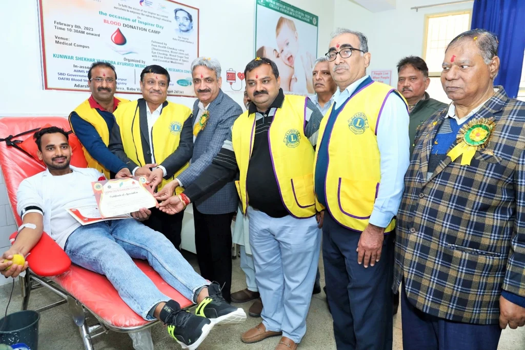 इस अवसर पर कुंवर शेखर विजेंद्र आयुर्वेद मेडिकल कॉलेज एंड रिसर्च सेंटर में मुफ्त चिकित्सा शिविर एवं रक्तदान शिविर का उद्घाटन संस्था के कुलपति प्रो.(डॉ.) रणजीत सिंह एवं कुलसचिव प्रो.(डॉ.) महिपाल सिंह जी द्वारा किया गया। रक्तदान शिविर के संचालन के लिए उत्तराखंड ऋषिकेश एम्स से 12 सदस्यों की टीम की अध्यक्षता में डॉक्टर अश्विन, सिविल अस्पताल, सहारनपुर से 09 सदस्यीय टीम की अध्यक्षता में डॉ. जुनेद, सविता गोस्वामी डॉ. रोहित वालिया एवं थैलेसीमिया जांच के लिए 04 सदस्यीय टीम में डॉ. अनुराधा एवं डॉ. अभिजीत पुंडीर चंडीगढ़ से अपने अनुभवी दल के साथ उपस्थित रहे तथा 2 एनजीओ जिनमे लायंस क्लब, गंगोह और जय हिंद समाज का विशेष योगदान रहा। इस वर्ष रक्तदान शिविर में लगभग 300 लोगों ने रक्तदान कर समाज के हित के लिए नेक कार्य किया। इस अवसर पर 74 शुगर चेकअप तथा 150 से अधिक मरीजों को मुफ्त दवाइयां उपलब्ध कराई गई एवं कुंवर शेखर विजेंद्र मेडिकल कॉलेज ऑफ नेचुरोपैथी एंड योगिक साइंस द्वारा एक स्ट्रेस मैनेजमेंट कैंप का भी आयोजन किया गया। कार्यक्रम का समापन आए हुए गणमान्यों का जलपान एवं प्रसाद वितरण के उपरांत हुआ।