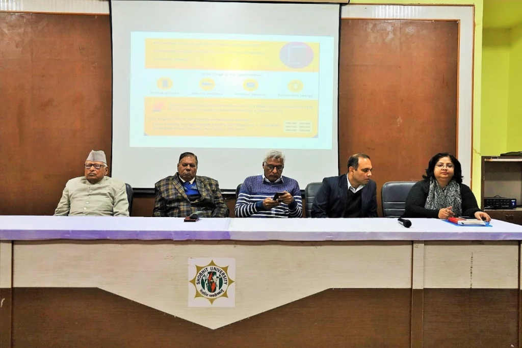 Shobhit University Gangoh: शोभित विश्वविद्यालय गंगोह में दिनांक 04-02-2023 को स्कूल ऑफ लिबरल आर्ट्स एंड लैंग्वेजेज विभाग एवं मानव संसधान विकास मंत्रालय, संस्था नवाचार प्रकोष्ठ के संयुक्त तत्वाधान में विश्वविद्यालय के सेमीनार हॉल में “नवाचार और उद्यमिता आउटरीच कार्यक्रम” का आयोजन किया गया। जिसमें शोभित विश्वविद्यालय गंगोह एवं आसपास के ग्रामीण क्षेत्र के लगभग 120 विद्यार्थियों ने बढ़-चढ़कर हिस्सा लिया तथा इनोवेशन और उधमिता पर व्यवहारिक ज्ञान प्राप्त किया।