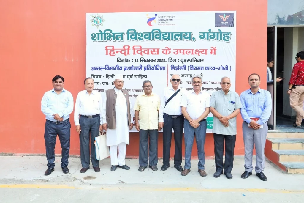 Shobhit University: शोभित विश्वविद्यालय गंगोह में दिनाँक 14-09-2023 दिन बृहस्पतिवार को हिन्दी दिवस के उपलक्ष्य में प्रश्नोत्तरी व काव्य-गोष्ठी का आयोजन किया गया।हिंदी दिवस का शुभारम्भ स्कूल ऑफ लिबरल आर्ट एंड लैंग्वेजेस विभाग द्वारा प्रश्नोत्तरी प्रतियोगिता के साथ किया गया,तत्पश्चात विश्वविद्यालय के सेमिनार हॉल में विरासत, यूनिवर्सिटी हेरिटेज रिसर्च सेंटर द्वारा हिन्दी दिवस के उपलक्ष्य में निर्झरणी विरासत काव्य-गोष्ठी का आयोजन किया गया।काव्य-गोष्ठी में सहारनपुर जन पद के जाने-माने कवियों और विश्वविद्यालय के विद्यार्थियों ने काव्य पाठ किया।