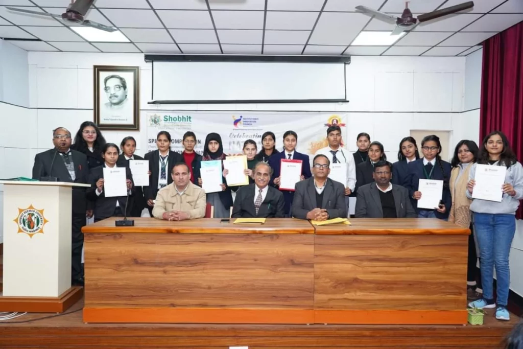 Shobhit University: मेरठ शोभित विश्विद्यालय के फाइन आर्ट्स क्लब द्वारा पोस्टर मेकिंग प्रतियोगिता का आयोजन किया गया। प्रतियोगिता में सभी छात्र छात्राओं ने बढ़ चढ़ कर हिस्सा लिया। पोस्टर प्रतियोगिता में छात्रों ने विकसित युवा एवं विकसित भारत का संदेश देते हुए विभिन्न पोस्टर प्रस्तुत किए।पोस्टर को अलग अलग बिंदुओं पर परखा गया। प्रतियोगिता में जज के रूप में डॉ गणेश भारद्वाज कुलसचिव और डॉ अशोक कुमार , निदेशक आईक्यूएसी रहे।