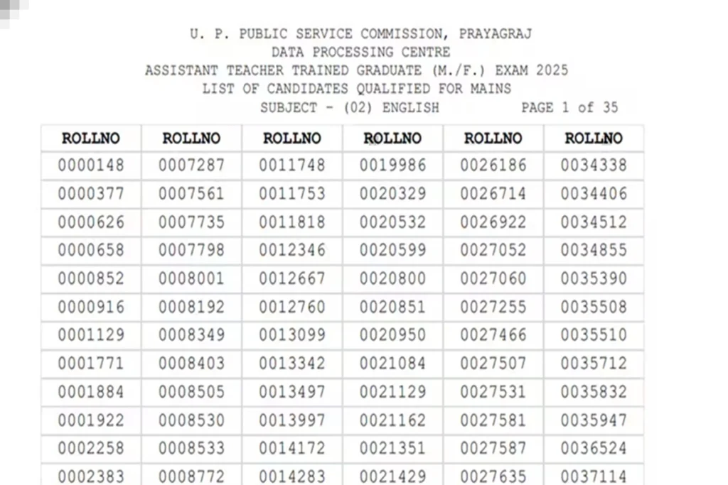 मालूम हो कि वे सभी अभ्यर्थी जिन्होंने यूपीपीएससी टीजीटी भर्ती प्रारंभिक परीक्षा सफलतापूर्वक पास कर ली है, अब मुख्य परीक्षा के लिए पात्र हैं। ध्यान दें कि प्रारंभिक परीक्षा में सफल रहे सभी अभ्यर्थी अब मुख्य परीक्षा में शामिल हो सकेंगे, जिसका कार्यक्रम आयोग द्वारा अलग से जारी किया जाएगा। इसके बाद, जो अभ्यर्थी मुख्य परीक्षा में सफल होंगे, वे दस्तावेज़ सत्यापन और अंतिम चयन प्रक्रिया में भाग लेने के पात्र होंगे। इसके अलावा, उत्तर प्रदेश लोक सेवा आयोग ने कहा है कि केवल उन्हीं अभ्यर्थियों को चयन प्रक्रिया के अगले चरण में भाग लेने की अनुमति दी जाएगी, जिनके रोल नंबर प्रदर्शित सूची में शामिल हैं। साथ ही, अभ्यर्थियों को सलाह दी जाती है कि वे यूपीपीएससी टीजीटी रिजल्ट 2025 के संबंध में अधिक जानकारी के लिए उत्तर प्रदेश लोक सेवा आयोग की आधिकारिक वेबसाइट पर विजिट करें।