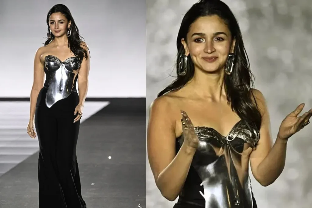 जहां तक पेरिस फैशन वीक में आलिया भट्ट के लुक की बात करें तो वह फेमस डिजाइनर गौरव गुप्ता के मैटेलिक कोर्सेट में काफी खूबसूरत नजर आई। सिल्वर टॉप के साथ ब्लैक पेंट उनकी खूबसूरती में चार चांद लगाने के लिए काफी रहा इस मैटेलिक कोर्सेट में उनका स्टाइलिश अंदाज निखर कर सामने आ रहा है। एक्ट्रेस डेब्यू फैशन वीक में अपना जलवा दिखाने में कामयाब रही। स्लिक वेट वेवी हेयर स्टाइल के साथ मिनिमल मेकअप और आंखों के कॉर्नर में ग्लिटर से लुक कंप्लीट कर रही है।