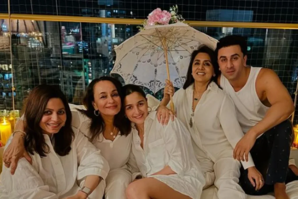 तस्वीर मदर डे थीम पर क्लिक गई है। जहां शाहीन व्हाइट कुर्ता पजामा में कूल दिखाई दे रही है तो सोनी राजदान और नीत बॉसी लुक में नजर आए। आलिया भट्ट लूज व्हाइट शर्ट को स्टाइल कर रही है तो रणबीर कपूर व्हाइट टी-शर्ट को फ्लॉन्ट करते हुए दिखे। इस दौरान नीतू कपूर हाथ में एक डेकोरेशन छाता लेकर पोज देती हुई नजर आई। इस दौरान सभी व्हाइट कलर की ड्रेस में ट्विन करते हुए दिखे और उनके बीच की बॉन्डिंग देखने के बाद फैंस जमकर प्यार लुटा रहे हैं।