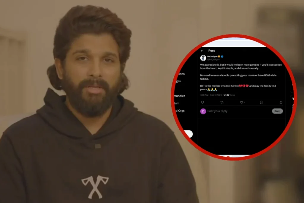 बता दे कि अल्लू अर्जून (Allu Arjun) की इस घोषणा के बाद से ही यूजर्स लगातार अपनी प्रतिक्रिया दे रहें है। कुछ लोग अल्लू अर्जून को ट्रोल करते हुए लिख रहे है कि एक्टर और प्रशासन की लापरवाही ने महिला की जान ले ली है। तो वहीं कुछ लोग अल्लू अर्जून के इस प्रतिक्रिया को सराह रहें है। वहीं इन तमाम प्रतिक्रिया के बीच एक यूजर ने लिखा कि “इस दुख भरी घड़ी में पुष्पा 2 के प्रचार वाली हुडी को पहनने की कोई जरुरत नहीं थी। वीडियो को साधारण भी रखा जा सकता था बिना किसी संगीत के।“
