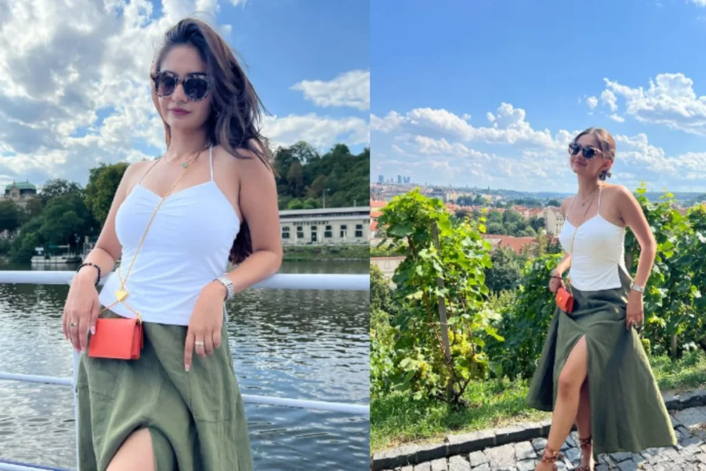 प्राग शहर से वह अलग-अलग झलकियां शेयर कर अपनी और शहर की खूबसूरती दिखाई हुई नजर आई। इसमें वह व्हाइट हॉल्टर नेकलाइन शॉर्ट टॉप को डेनिम स्कर्ट के साथ पेयर करती हुई नजर आ रही है।कहने में दो राय नहीं है कि उनका यह लुक किसी को भी लुभाने के लिए काफी है। मिनिमल मेकअप के साथ उन्होंने गॉगल्स और पेंडेंट से अपने लुक को कंप्लीट किया।