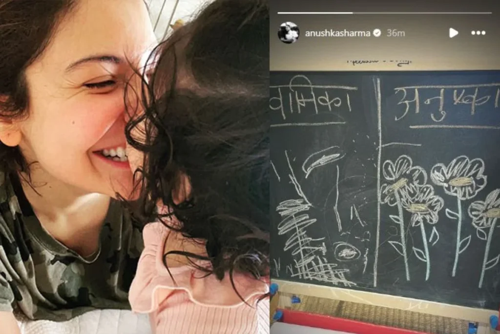 हाल में अनुष्का शर्मा ने अपने इंस्टाग्राम पर एक फोटो पोस्ट किया जिसमें एक ब्लैक बोर्ड दिख रहा है। बता दें यह ब्लैक बोर्ड दो भागों में बटा हुआ है एक अनुष्का के नाम का तो, दूसरा बेटी वामिका के नाम का। दोनों मां बेटी ने अपने-अपने बॉक्स में ड्राइंग कर रखी है और एक दूसरे की कला को टक्कर दे रही हैं। एक्ट्रेस की यह तस्वीर काफी ज्यादा क्यूट है जिससे यह साफ हो रहा है कि वह अपनी बेटी को किस तरह अच्छी चीजें सिखा रहे हैं।
