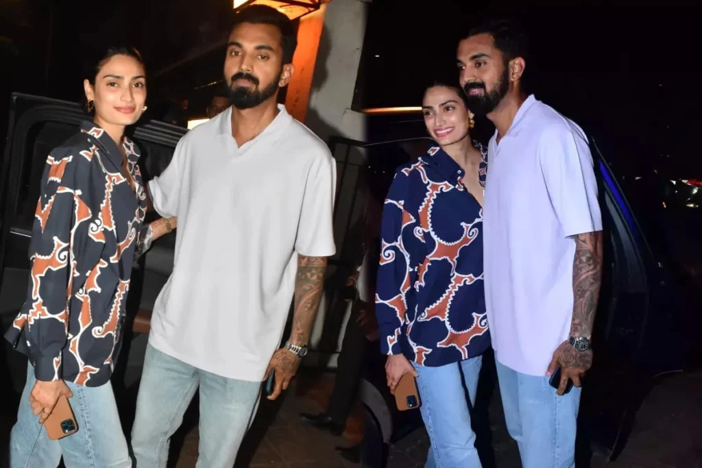 वायरल हो रही इन तस्वीरों की बात करें तो इस लुक में अथिया ने साड़ी-चूड़ा छोड़ प्रिंटेड ब्लू लूज शर्ट और डेनिम जींस में नजर आई। इस दौरान वह मिनिमल मेकअप में काफी स्टाइलिश दिखी। वहीं, केएल राहुल इस दौरान व्हाइट टीशर्ट और डेनिम जींस में दिखे। वायरल हो रही तस्वीरों में आप देख सकते हैं कि कपल के चेहरे पर खुशी साफ झलक रही है। दोनों एक-दूसरे का हाथ थामे हुए रोमांटिक पोज दे रहे हैं। इस दौरान केएल अथिया को प्रोटेक्ट करते भी नजर आ रहे हैं।