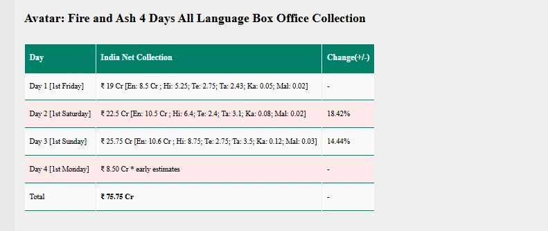 Avatar: Fire And Ash Box Office Collection Day 4 में आयी गिरावट