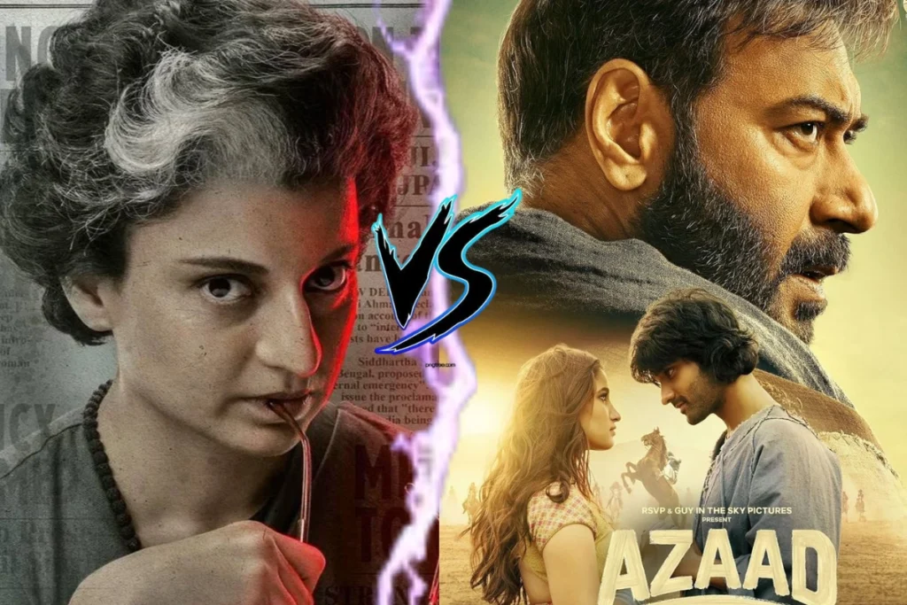 Azaad vs Emergency: बॉलीवुड में इन दिनो फिल्मों की शैलाब चल रही है। वही कल यानि कि 17 जनवरी को बॉलीवुड की दो बड़ी फिल्मे रिलीज़ होने जा रही है। जहाँ एक तरफ Kangana Ranaut की फिल्म का लोग बेसब्री से इंतज़ार कर रहे है। तो वहीं दूसरे तरफ अजय देवगन और Rasha Thadani की फिल्म आज़ाद भी लोगों को के मन को मोह रही है। अब इसी बीच लोगो के मन में बड़ा सवाल ये है कि एक ही दिन में दो बड़ी फिल्म रिलीज़ में किसका पलड़ा भारी होने वाला है। Azaad vs Emergency में जानेंगे कि कंगना रनौत की फिल्म इमरजेंसी के आगे क्या फिकी पड़ जाएगी Ajay Devgn और राशा ठडानी की फिल्म Azaad ?
