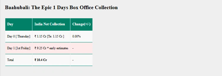 Baahubali: The Epic Box Office Collection Day 1 चौंका रहा