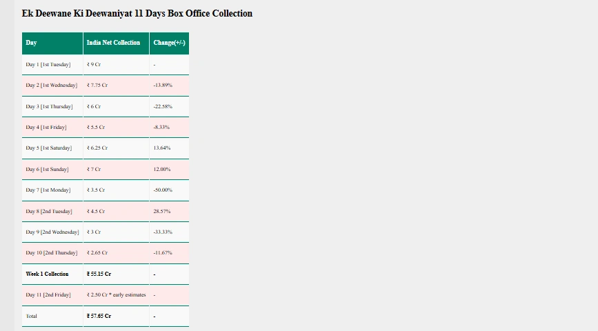 हर्षवर्धन राणे और और सोनम बाजवा की फिल्म ‘एक दीवाने की दीवानियत’ भी चर्चाओं हैं। इसकी वजह है दर्दनाक लव स्टोरी है। 25 करोड़ से बनी इस फिल्म ने अभी तक 57.65 करोड़ रुपए कमा लिए हैं।