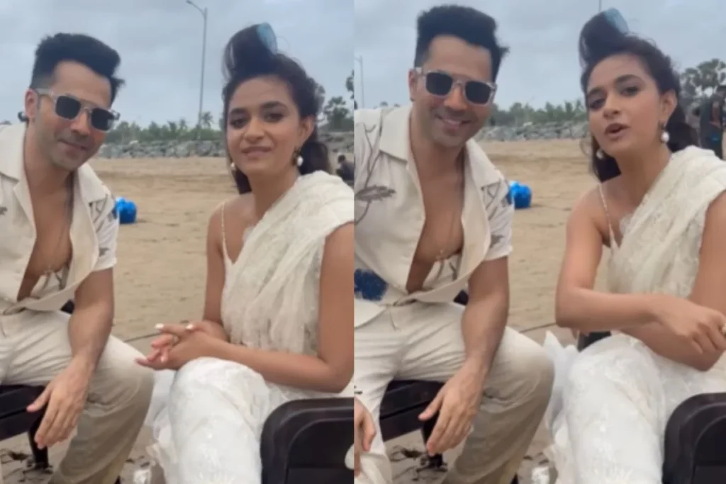 कीर्ति सुरेश ने वरुण धवन के साथ इस वीडियो को शेयर करते हुए कैपश्न में लिखा, “बेबी जॉन को कुछ बेबी सबक देना। एक सबक दोहराना पड़ा हजार बार।” इस वीडियो में आप देखेंगे कि दोनों शूटिंग पर है और इस दौरान कीर्ति व्हाइट साड़ी में नजर आ रही है तो वरुण धवन भी उन्हें ट्विन करते दिखे। वीडियो में कीर्ति सुरेश कहती है, “यह मेरा ट्यूटोरियल वीडियो है जहां मैं वरुण धवन को सिखाऊंगी हिंदी नहीं तमिल, मलयालम और तेलुगु। वरुण कहते हैं कि मैं हिंदी जानता हूं मुझे यह जानना है कि आई लव यू तमिल मलयालम और तेलुगु में कैसे बोलते हैं।” इस पर कीर्ति सुरेश शॉक्ड रह जाती और कहती है किसको बोल रहे हो मुझे।