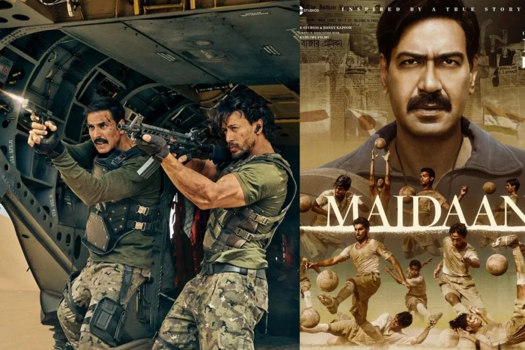 Bade Miyan Chote Miyan Box Office Day 2: बॉलीवुड के मशहूर एक्टर अक्षय कुमार (Akshay Kumar) टाइगर श्रॉफ (Tiger Shroff) की ताबड़तोड़ फिल्म Bade Miyan Chote Miyan और जाने-माने एक्टर अजय देवगन (Ajay Devgn) की फिल्म मैदान एक साथ ईद के दिन रिलीज़ की गई थी। लेकिन, दोनों ही फिल्मों के बॉक्स ऑफिस कलेक्शन में जमीन आसमान का अंतर देखने को मिल रहा है। यहीं आपको यह जानकार भी काफी हैरानी होगी कि, अक्षय की इस फिल्म ने मैदान को केवल बॉक्स ऑफिस में ही नहीं अपने शानदार कंसेप्ट से भी काफी पीछे छोड़ दिया है। चलिए एक जज़र डालते हैं कि, किस फिल्म ने कितनी और किसने ज्यादा कमाई की है।