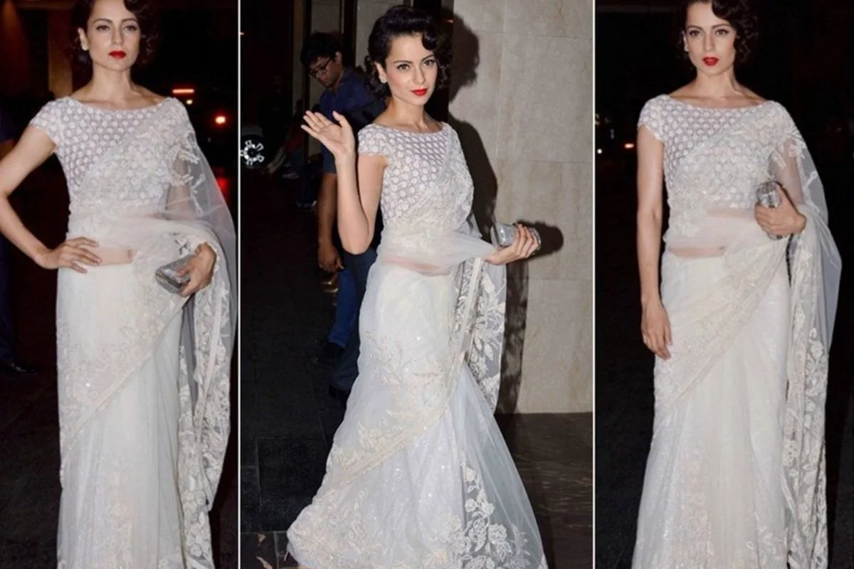 अगर आप समर सीजन में चैत्र नवरात्रि के मौके पर कंगना रनौत से इंस्पायर होकर इस तरह की व्हाइट साड़ी को स्टाइल करती है तो यह आपको सिंपल लुक के साथ-साथ कंफर्टेबल और रॉयल फैशन देने के लिए बेस्ट चॉइस है। यह देख सब आपके फैन हो जाएंगे।