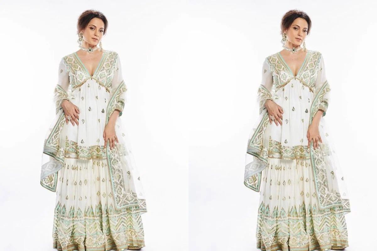 साड़ी से हटके चैत्र नवरात्रि 2026 डे 5 पर आप कंगना राणावत से इंस्पायर होकर सफेद कुर्ते को भी स्टाइल कर सकते हैं जो देसी वाइब देने के लिए बेस्ट चॉइस है। ऐसे में अगर आप चैत्र नवरात्रि के मौके पर शरारा सेट को स्टाइल करती है तो सब देखते रह जाएंगे। इस तरह से लाइट कॉटन शरारा लुक में तड़का लगाने के लिए काफी है।
