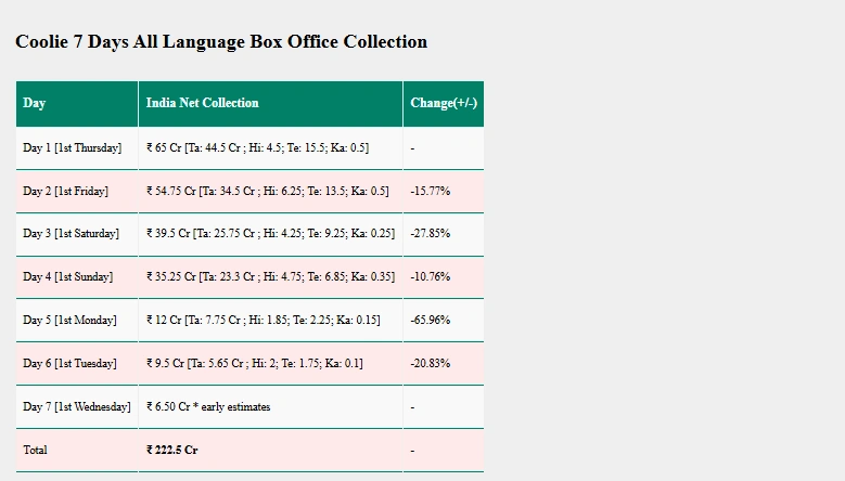 Coolie Box Office Collection Day 7 कितना हुआ?