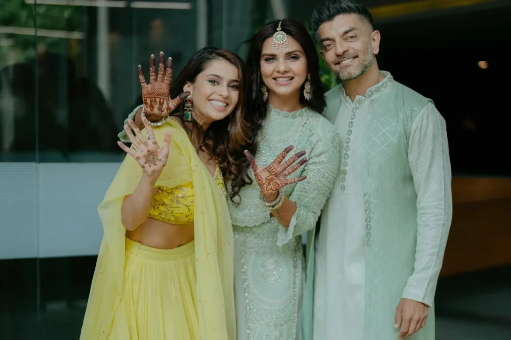 मेहंदी सेरिमनी में दलजीत के लुक की बात की जाए तो लाइट ग्रीन लहंगे में हाथों में मेहंदी रची हुई दिलजीत काफी खूबसूरत नजर आ रही हैं। वहीं उनके पति ने उनके साथ मैचिंग करते हुए लाइट ग्रीन कलर का कुर्ता पजामा पहना हुआ है। सुनायना फौजदार और सनाया ईरानी के साथ करिश्मा दत्ता भी अपने दोस्त की शादी में शामिल हुई। उन्होंने इस खास मौके पर दुल्हन की मैचिंग कलर का सलवार कमीज भी पहना हुआ है।