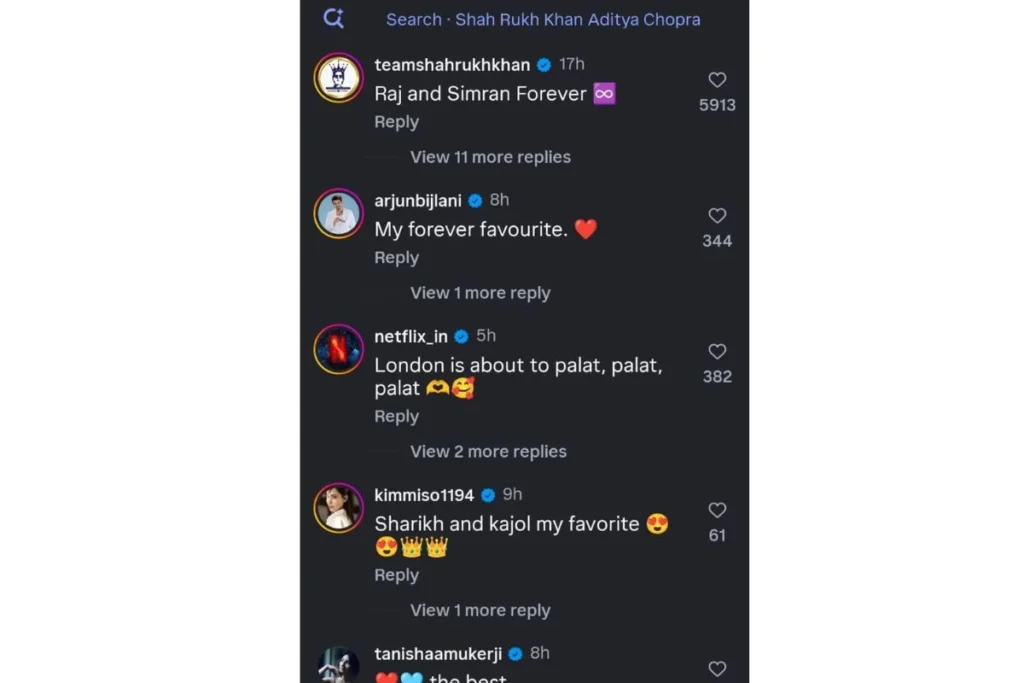 शाहरुख खान और काजोल की फिल्म दिलवाले दुल्हनिया ले जाएंगे को लेकर न सिर्फ भारत बल्कि दुनिया भर में एक अलग ही क्रेज है। डीडीएलजे स्टैच्यू लंदन से पहले भी यह इतिहास दर्ज कर चुकी है। यह लव स्टोरी मराठा मंदिर में लगभग 30 साल तक चली है। यह निश्चित तौर पर शाहरुख खान के लिए क्रेज से कम नहीं है। ऐसे में शाहरुख ने पोस्ट के साथ कहा बड़े-बड़े देशों में ऐसी छोटी-छोटी बातें होती रहती हैं सेनोरिटा और डीडीएलजे स्टेच्यू का अनावरण कर वह काफी खुश दिखे। उनके इस पोस्ट पर नेटफ्लिक्स ने लिखा ” लंदन ऐसा लग रहा होगा पलट पलट पलट।”