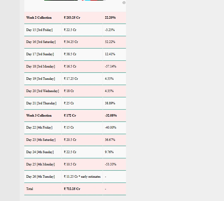 ‘धुरंधर’ ने मंगलवार को 11.25 करोड़ रुपए का कलेक्शन किया है। वहीं, भारत में ये एक्शन मूवी 712.25 करोड़ रुपए कमा चुकी है। आदित्यधर की इस फिल्म का बजट 280 करोड़ के आस-पास है।
