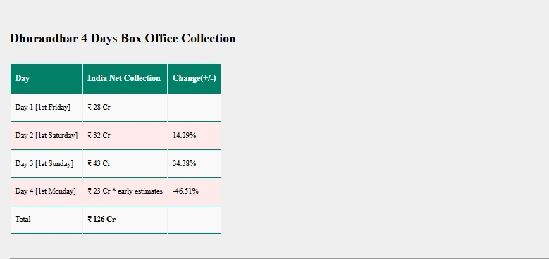 Dhurandhar Box Office Collection Day 4 में आयी गिरावट