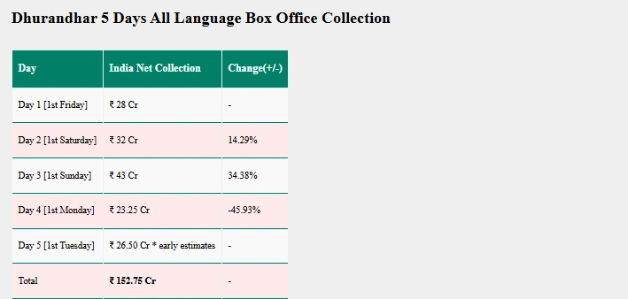 Dhurandhar Box Office Collection Day 5 कितना हुआ?