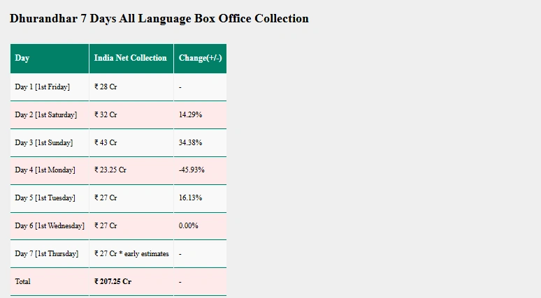 Dhurandhar Box Office Collection Day 7 कितना हुआ?