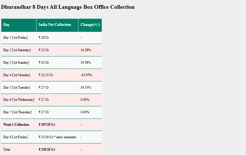 Dhurandhar Box Office Collection Day 8 कितना हुआ?