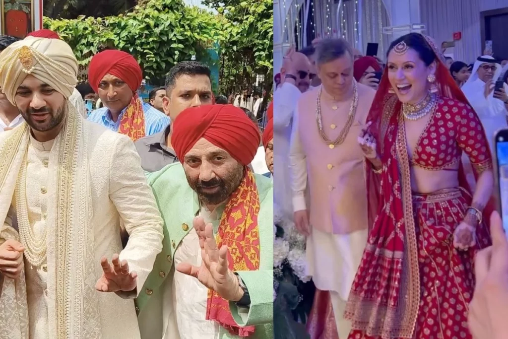 Karan Deol Drisha Acharaya: सनी देओल के बेटे और धर्मेंद्र के पोते करण देओल और दिशा आचार्य की शादी को लेकर लोग बेसब्री से इंतजार कर रहे थे और अब सेरेमनी से कई वीडियो और फोटो वायरल हो रहे हैं। ख़ास दिन पर करण क्रीम शेरवानी में नजर आ रहे हैं वहीं दिशा भी चर्चा में है। करण की शादी को लेकर जहां लोगों के बीच में काफी एक्साइटमेंट देखने को मिल रही थी। वहीं अब शादी की वीडियो और फोटोज चर्चा में है। यह सच है कि देओल फैमिली के लिए यह सेरेमनी काफी खास था क्योंकि लंबे समय बाद उनके घर में कोई फंक्शन देखने को मिला है।