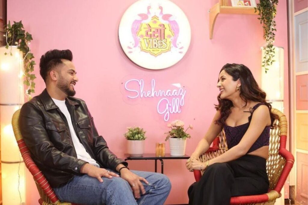 दरअसल शुक्रवार को Elvish Yadav का एक वीडियो तेज़ी से वायरल हो रहा है। इस वीडियो में एल्विश पंजाबी सिंगर और बॉलीवुड अभिनेत्रीशहनाज़ गिल के चैट शो ‘देसी वाइब्स विद् शहनाज़ गिल’ में नज़र आ रहे हैं। इस वीडियो में शहनाज़ एक नीले रंग के क्रॉप टॉप और ब्लैक वाइड लेग पैंट पहने नज़र आ रही हैं। वहीं एल्विश ने इस शो के लिए सफेद टी-शर्ट, नीली डेनिम जीन्स और लैदर जैकेट पहने दिख रहे हैं। इसके साथ ही शहनाज़ के टॉक शो की कुछ तस्वीरें भी सोशल मीडिया पर सामने आई हैं। इन तस्वीरों में ऐसा लग रहा है जैसे शहनाज़ और एल्विश मजेदार बातचीत में व्यस्त हैं।