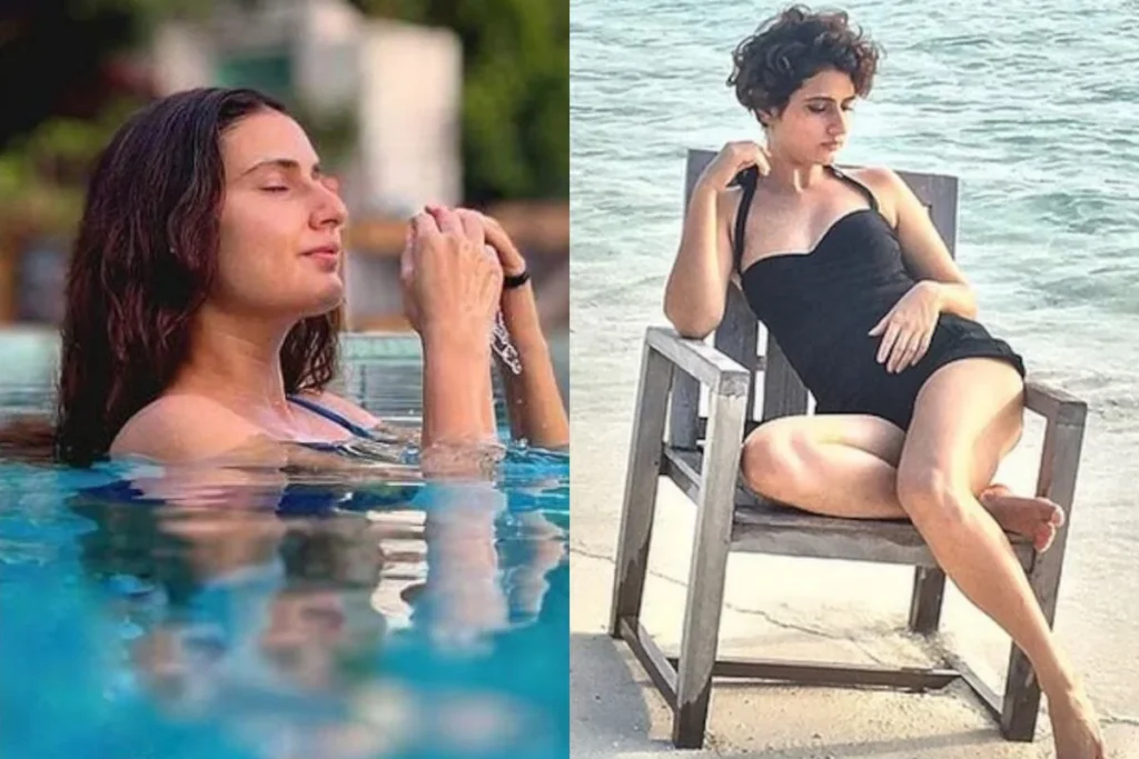 बिकिनी विद ऑफ शोल्डर ड्रेस में Fatima Sana Shaikh
