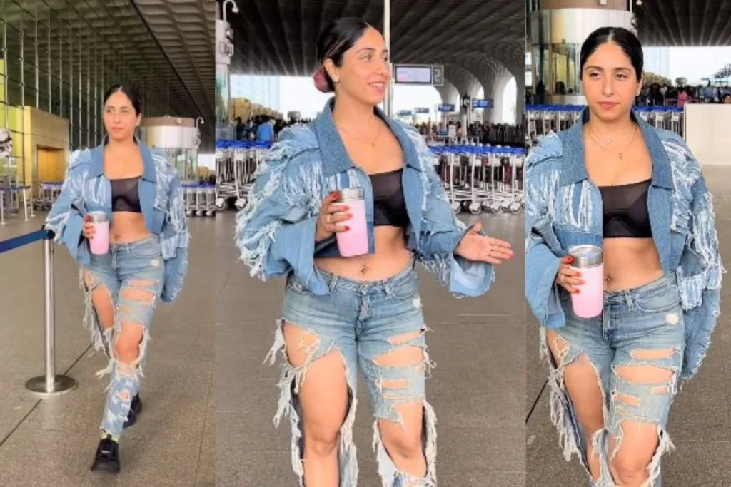 यहीं आपको बता दें उर्फी की तरह नेहा भी अपने सिंपल से सिंपल लुक में स्टाइल का तड़का लगा कर हर किसी की निगाहें अपनी और खींच लेती हैं। और इस बार भी कुछ ऐसा ही हुआ है। दरअसल, हर बार की तरह इस बार भी मशहूर सिंगर और सोशल मीडिया सेंसेशन नेहा भसीन को पैप्स द्वारा एयरपोर्ट पर एक यूनिक स्टाइलिंग के साथ स्पॉट किया गया। अपने इस लुक में सिंगर ब्लैक ट्यूब टॉप पर डेनिम की जैकेट पहने और बॉटम में डीप रिप्ड डेनिम की ब्लू जीन्स पहने दिख रही हैं। जो उनपर काफी स्टाइलिश एंड अतरंगी लग रहा है।