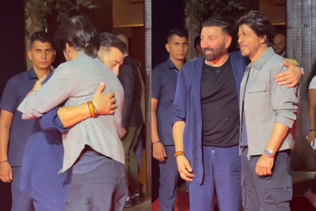हालांकि शाहरुख़ ने पार्टी में जाते वक्त मीडिया के कैमरों के आगे पोज़ नहीं किया लेकिन पार्टी से बाहर निकलते वक्त उन्होंने एक ख़ास व्यक्ति के साथ तस्वीरें क्लिक करवाईं। वह व्यक्ति कोई और नहीं बल्कि ‘Gadar 2’ स्टार Sunny Deol थे। दोनों अभिनेताओं ने इस मौक़े पर एक दूसरे के कंधों पर हाथ रखकर कैमरा के आगे पोज़ किया। इसी पल की कई तस्वीरें और वीडियो अब सोशल मीडिया पर वायरल हो रही हैं। इन तस्वीरों में दोनों स्टार्स ख़ुशी-ख़ुशी फैंस के लिए कैमरों के आगे सलाम करते दिख रहे हैं। पोज़ करने के बाद दोनों स्टार्स एक दूसरे से गले मिले और शाहरुख़, सनी का हाथ पकड़कर उन्हें पार्टी में दोबारा वापस छोड़ते भी दिखाई दिए।