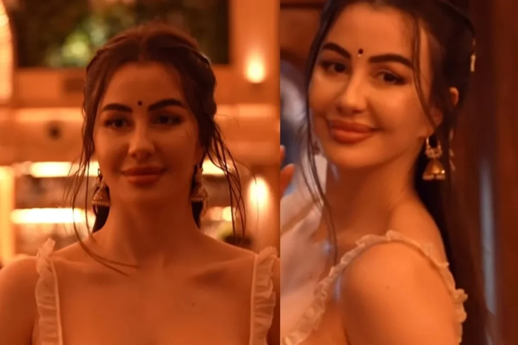 दरअसल इवेंट में जॉर्जिया एंड्रियानी फुल ऑन देसी लुक में मॉडर्न तड़का लगाते हुए दिख रही है। इस दौरान वह व्हाइट कलर की कॉर्सेट ब्लाउज को कैरी करती हुई दिखाई देती है जिसमें उनके कर्व्स जमकर फ्लॉन्ट हो रहे हैं। इस दौरान बालों में गजरा माथे पर बिंदी, ग्लॉसी लिपस्टिक और झुमके को स्टाइल कर रही जॉर्जिया की खूबसूरती देखने लायक है। हालांकि उन्होंने गलती सिर्फ इतनी कर दी कि वह पल्लू कंधे पर लेने की बजाय सिर्फ हाथ पर स्टाइल करती दिखी।