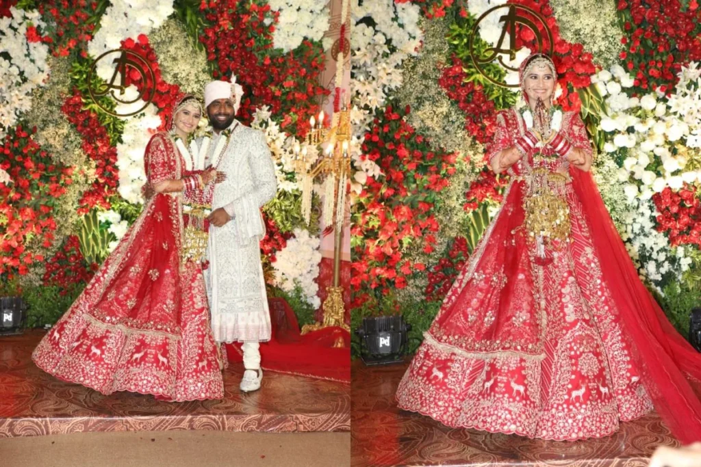 बीते कई दिनों से पूरे इंटरनेट पर एक्ट्रेस के प्री वेडिंग फंक्शन्स की वीडियोज और तस्वीरें जमकर वायरल हो रही थीं और अब जैसी ही सोशल मीडिया पर आरती के शादी की पहली झलक ने सामने आते ही पूरे इंटरनेट की दुनियां में सुनामी ला दी। यहीं आपको बता दें, आरती अपनी शादी में ओरों की तरह पीच या लाइट कलर का नहीं बल्कि एक देसी ब्राइड की तरह रेड हैवी लहंगा और क्लासी ज्वैलरी पहने नजर आ रही हैं।