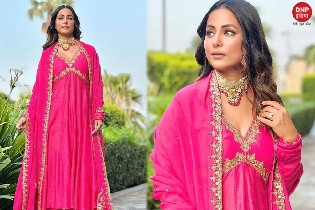 हिना खान की इस लेटेस्ट लुक ने सोशल मीडिया पर तबाही मचा दी है और उनका अंदाज दिलकश है। एक्ट्रेस ने पिंक लॉन्ग सूट और प्लाजो को कैरी किया है जिसका नैक वी शेप में प्लंजिंग स्टाइल में है। सूट का स्लीव्स भी फुल लेंथ में है और वह चूड़ीदार डिजाइन में है। हिना ने इस ट्रेडिशनल ऑउटफिट को दुपट्टे के साथ स्टाइल किया है जो इसे और भी खास बना रहा है। दुपट्टे में हेवी गोल्डन गोटा वर्क है जो इसे क्लासी टच देने के लिए परफेक्ट है। हिना का यह देसी ट्रेडिशनल अंदाज लोगों को खूब पसंद आ रहा है।