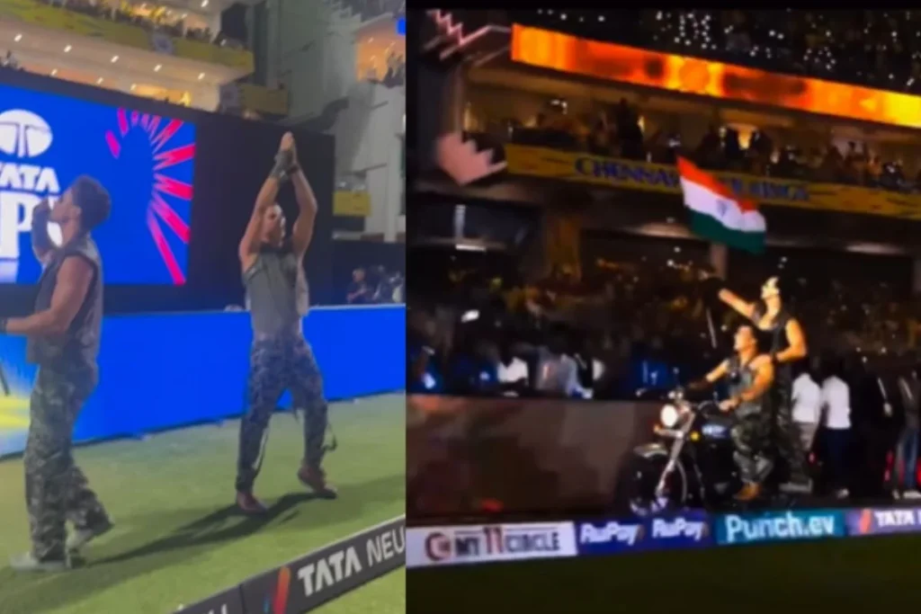 IPL 2024: आईपीएल 2024 की शुरुआत चेन्नई सुपर किंग्स और रॉयल चैलेंजर्स बैंगलोर के बीच हुई। इस दिलचस्प मैच में सीएसके ने अपनी जीत दर्ज कर ली लेकिन ओपनिंग सेरेमनी में ‘बड़े मियां छोटे मियां’ का जादू तो खूब चला। जी हां, सोशल मीडिया पर वीडियो वायरल हो रहा है जिसमें अक्षय कुमार और टाइगर श्रॉफ की जोड़ी कुछ इस कदर धमाल मचाती हुई नजर आई। स्टेडियम में बैठे फैंस ने तालिया की गड़गड़ाहट के बीच अक्षय और टाइगर का गर्मजोशी से स्वागत किया। अब यह वीडियो सोशल मीडिया पर खूब चर्चा में है जिसे टाइगर श्रॉफ ने खुद ही शेयर किया।