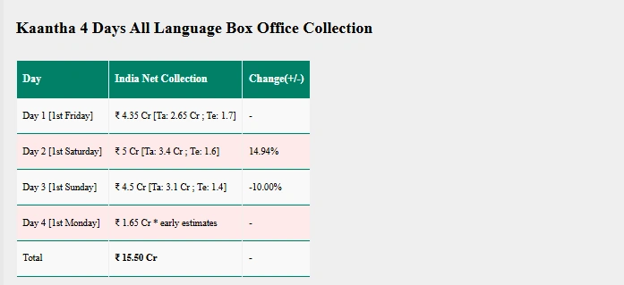 Kaantha Box Office Collection Day 4 कितना हुआ?