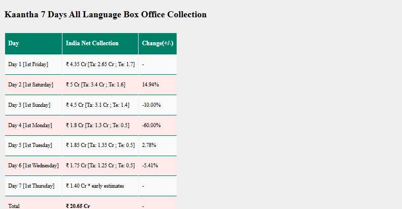 Kaantha Box Office Collection Day 7 कितना हुआ?