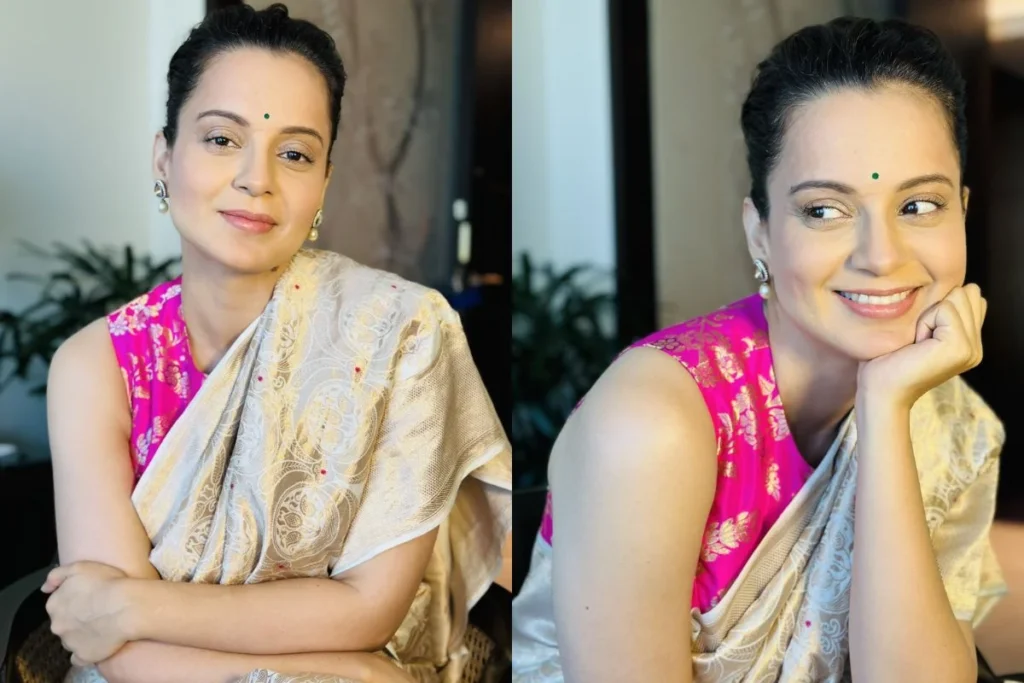 दरअसल इमरजेंसी एक्ट्रेस ने अपनी कुछ तस्वीरें शेयर की है जिसमें वह गोल्डन कलर की साड़ी में काफी खूबसूरत नजर आ रही हैं। इस साड़ी को उन्होंने पिंक ब्लाउज और ग्रीन बिंदी के साथ कंप्लीट टच देती नजर आई। वहीं बन हेयर स्टाइल के साथ इयररिंग्स से इस लुक में चार चांद लगा रही हैं। तस्वीरों में वह अपने चेहरे पर मिलियन डॉलर स्माइल के साथ गजब एक्सप्रेशन देती दिख रही है।
