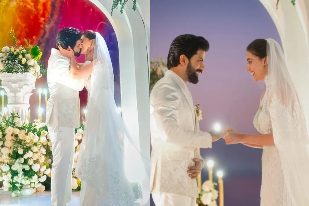 Keerthy Suresh: बेबी जॉन एक्ट्रेस कीर्ति सुरेश ने Antony Thattil ईसाई रीति रिवाज से शादी की है। फोटोज को सोशल मीडिया पर शेयर की है जिसमें वह काफी खूबसूरत नजर आ रही है।अपने पति के साथ वह लिप लॉक करती दिखीं।