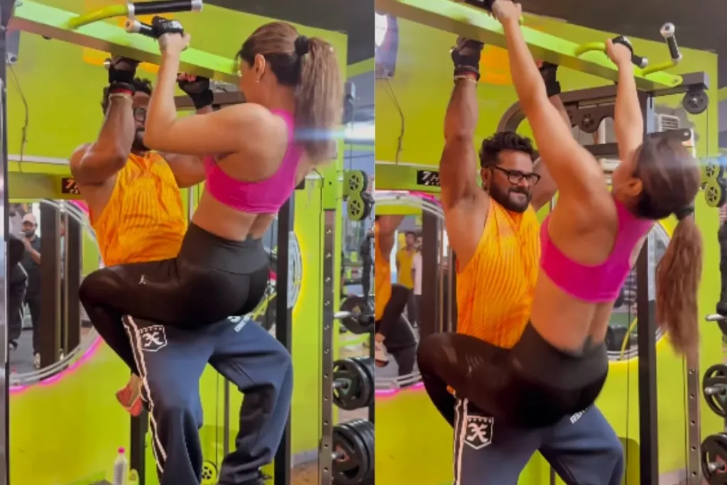 Akanksha Puri और Khesari Lal Yadav का जिम वीडियो वायरल