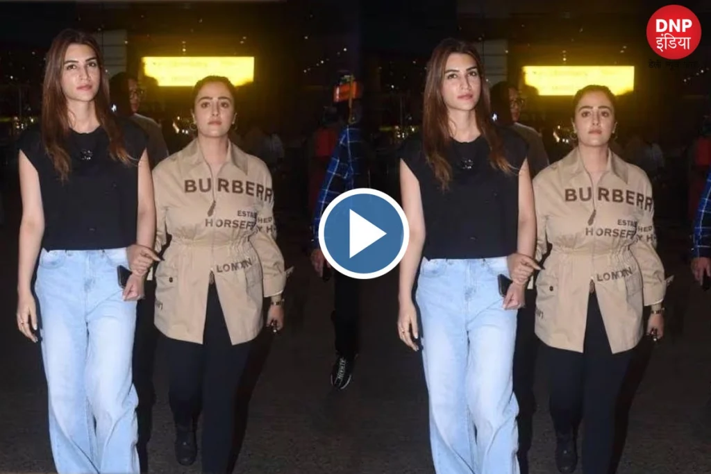 Kriti Sanon: कृति सेनन वह नाम है जो सोशल मीडिया पर चर्चा में रहती हैं। एक्ट्रेस हाल ही में कार्तिक आर्यन की फिल्म में नजर आई थी। इस फिल्म से करती का जादू फैंस पर नहीं दिखा लेकिन एक्ट्रेस ग्लैमरस अंदाज से हर बार चर्चा में आ जाती है। एक बार फिर कृति को स्पॉट किया गया और इस दौरान वह अपनी बहन नूपुर सेनन के साथ नजर आईं। दोनों का यह वीडियो सोशल मीडिया पर चर्चा में है जिसमें वे हाथों में हाथ डाले नजर आ रहे हैं। बहन के बीच की बॉन्डिंग को फैंस खूब पसंद कर रहे हैं।