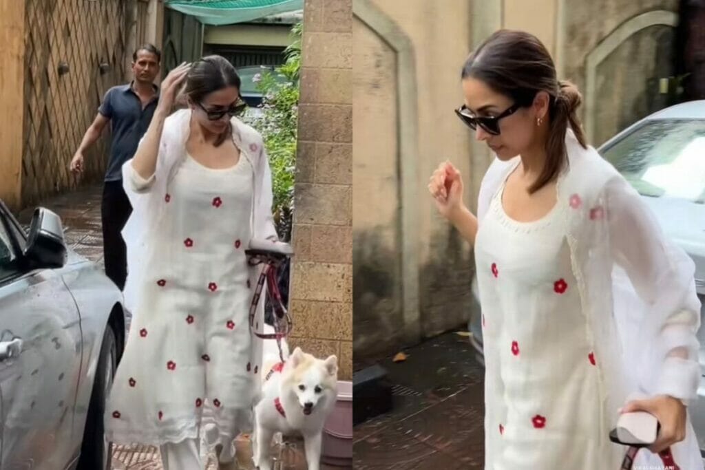 Malaika Arora: लाल और सफेद सूट में अपने पालतू कुत्ते को घुमाती दिखीं एक्ट्रेस, फैंस बोले ‘ऐसे कपड़ों में अच्छी लगती हो’