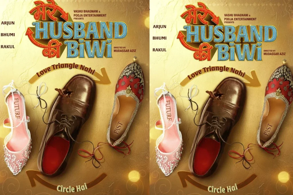Mudassar Aziz के निर्देशन में बनी Mere Husband Ki Biwi के मोशन पोस्टर भी काफी अलग तरीके से जारी किया गया है। जहां अर्जुन कपूर Bhumi Pednekar और Rakul Preet Singh के साथ रोमांस फरमाते हुए नजर आएंगे। इस कॉमेडी ड्रामा को देखने के लिए आपको 21 फरवरी 2025 तक का इंतजार करना पड़ेगा क्योंकि यह फिल्म इस दिन रिलीज होने वाली है। Arjun Kapoor की Mere Husband Ki Biwi को लेकर सोशल मीडिया पर खलबली मच गई है क्योंकि एक मोशन क्लिप के साथ इसकी जानकारी दी गई। ‘मेरे हस्बैंड की बीवी’ में एक जूते और दो लेडिज सैंडल और बेली को बांधकर दिखाया गया है।