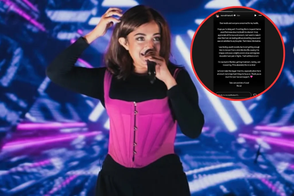 बॉलीवुड सिंगर Monali Thakur को लेकर एक खबर जोरो शोर पर चल रही है। कहा जा रहा है कि सिंगर की बीच शो में तबियत खराब होने से उन्हे अस्पताल ले जाया गया है। अपने उपर चल रहे इस खबर पर मोनाली ठाकूर ने अपनी प्रतिक्रिया साझा की है। अपने सोशल मीडिया पोस्ट के जरिए मोनाली ने मीडिया को ऐसे गलत खबर फैलाने पर आपत्ती जताई है। साथ अपने हेल्थ को लेकर एक बड़ी बात कही है। आइए जानते है क्या है पूरा मामला। और किस कारण से मोनाली को बीच शो को छोड़ कर जाना पड़ा।
