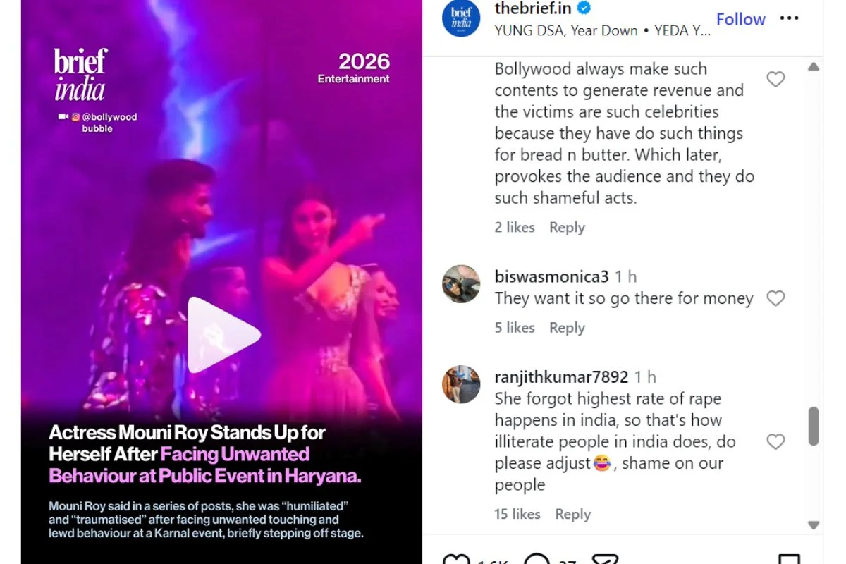 Mouni Roy: हरियाणा के इवेंट में मौनी रॉय के साथ कुछ ऐसा हुआ जो वह बर्दाश्त नहीं कर सकी और उन्होंने अपने साथ बदसलूकी की बात कह कर अपने फैंस को हैरान करती दिखी। वहीं इस सब के बीच मौनी रॉय का वीडियो भी सोशल मीडिया पर वायरल हो रहा है जिसमें कथित तौर पर एक्ट्रेस वहां मौजूद दर्शकों को मिडिल फिंगर दिखाती नजर आती हैं। हरियाणा के एक इवेंट में अपने साथ बदसलूकी के बारे में जिक्र करते हुए मौनी रॉय ने एक लंबा चौड़ा पोस्ट बीते दिन लिखा था। इसके साथ ही अपने साथ हुए हरासमेंट को लेकर बात करती हुई दिखी थी। आइए देखते हैं वायरल वीडियो पर लोग किस तरह रिएक्शन दे रहे हैं।