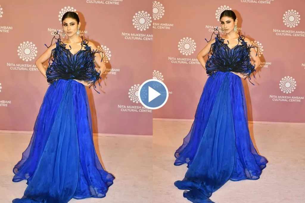 Mouni Roy: टीवी से लेकर बॉलीवुड तक का सफर तय कर चुकी मौनी रॉय आए दिन सोशल मीडिया पर राज करती हैं। ऐसे में वह ‘नीता मुकेश अंबानी कल्चरल सेंटर’ पर पहुंची। इस दौरान उनका ग्लैमसर अंदाज ने फैंस का दिल जीत लिया। सोशल मीडिया पर वायरल हो रहे वीडियो में आप देख सकते हैं कि मौनी ब्लू गाउन में पहुंची। इस गाउन में टॉप पर बटरफ्लाई डिजाइन है जो काफी यूनिक है। एक्ट्रेस ने इस लुक को पोनीटेल हेयर स्टाइल, मैचिंग इयररिंग्स और स्मोकी आईमेकअप से कम्पलीट किया है। रेड कारपेट पर यह लुक वाकई देखने लायक है। यह वीडियो सोशल मीडिया पर चर्चा में है।