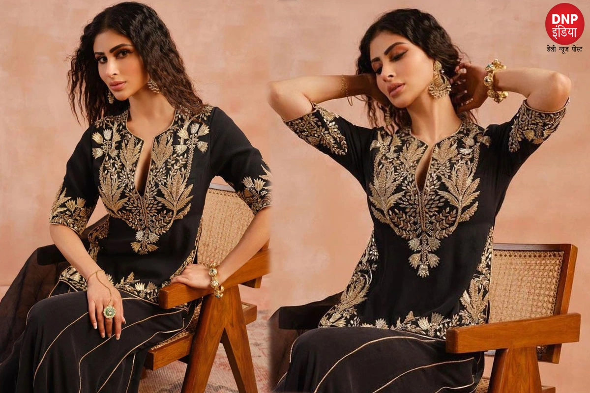 मौनी कुर्सी पर बैठकर ग्लैमरस पोज दे रही हैं और लोगों के दिलों को जीतने में कामयाब हुई है। उनके लुक से लोगों की निगाहें हटनी मुश्किल है क्योंकि उन्होंने ब्लैक एथनिक लुक से सोशल मीडिया पर गर्मी बढ़ा दी है। अगर मौनी की ड्रेस की बात करें तो वह ब्लैक कढाई वाली सूट को स्टाइल कर रही हैं। यह एक शॉर्ट सूट और मैचिंग प्लाजो है जिसमें मौनी का अंदाज काफी अलग है। एक्ट्रेस ने इस लुक को गोल्डन ब्रेसलेट और बड़े झुमके से खास टच दिया है। फोटोज में आप देख सकते हैं कि मौनी का अंदाज वाकई काफी कातिलाना है।